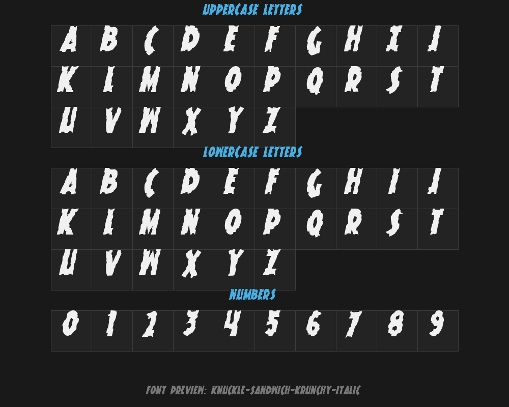 | PostScript name | KnuckleSandwichKrunchyItalic |