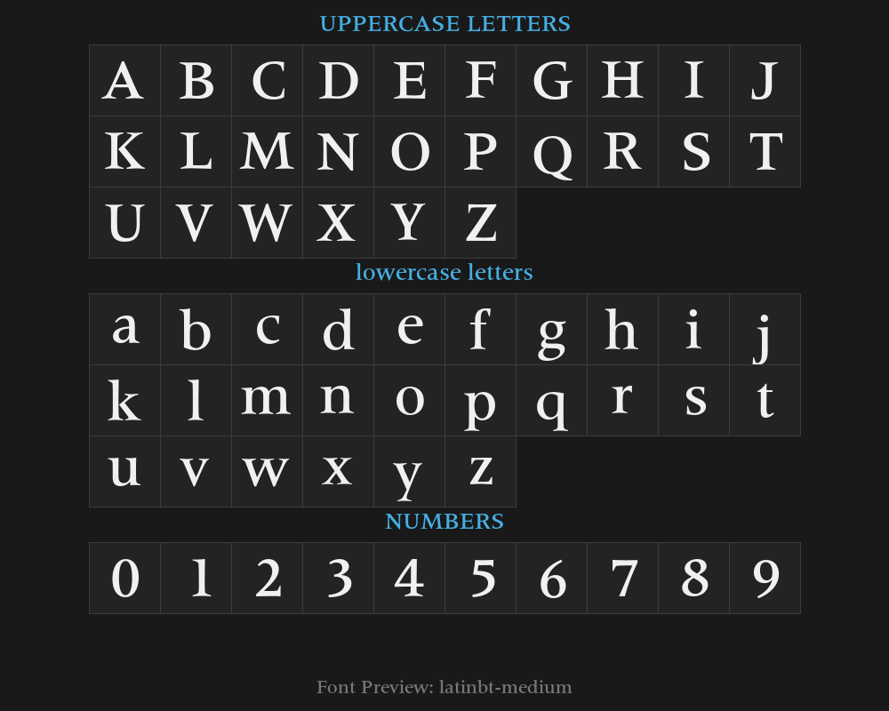 latin725bt-medium is a font file with a size of 0.04 MB. The full font name is Latin725BT-Medium, 003.001 version. It contains 229 characters, supports 8 Chinese characters. The copyright belongs to Latin 725. latin725bt-medium font is available for free download, but commercial use requires confirmation on the Latin 725 official website whether it's free for commercial use.