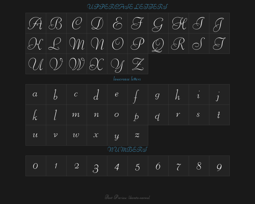 liberate-normal is a font file with a size of 0.07 MB. The full font name is Liberate Normal, Altsys Fontographer 4.1 1 8 95 version. It contains 220 characters, supports 8 Chinese characters. The copyright belongs to Liberate. liberate-normal font is available for free download, but commercial use requires confirmation on the Liberate official website whether it's free for commercial use.
