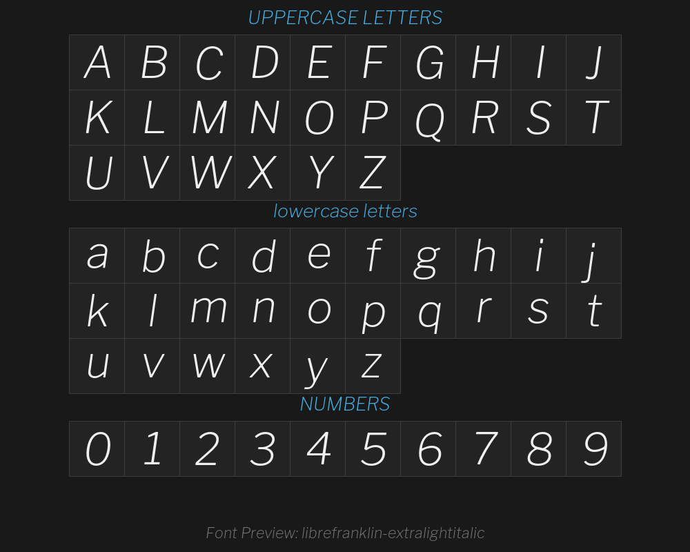 | PostScript name | LibreFranklin-ExtraLightItalic |