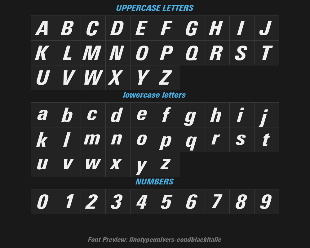 | AboutFont | LinotypeUnivers-CondBlackItalic 1178532837 |