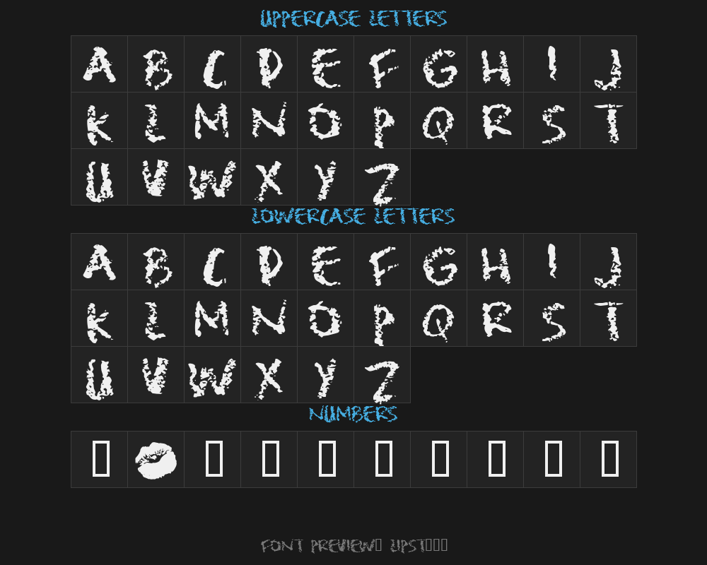 lipst___ is a font file with a size of 0.06 MB. The full font name is Lipstick Traces, Macromedia Fontographer 4.1 2 08 99 version. It contains 54 characters, supports 8 Chinese characters. The copyright belongs to Lipstick Traces. lipst___ font is available for free download, but commercial use requires confirmation on the Lipstick Traces official website whether it's free for commercial use.