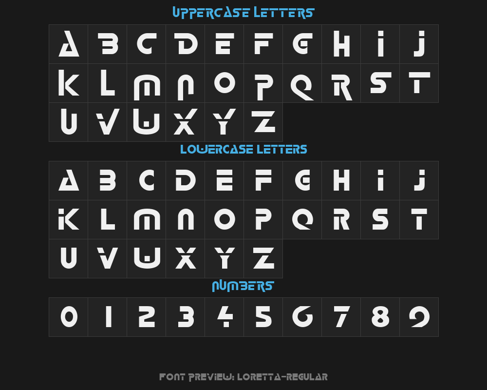 loretta-regular is a font file with a size of 0.02 MB. The full font name is LORETTA Regular, Altsys Fontographer 3.5 3 17 97 version. It contains 100 characters, supports 8 Chinese characters. The copyright belongs to LORETTA. loretta-regular font is available for free download, but commercial use requires confirmation on the LORETTA official website whether it's free for commercial use.