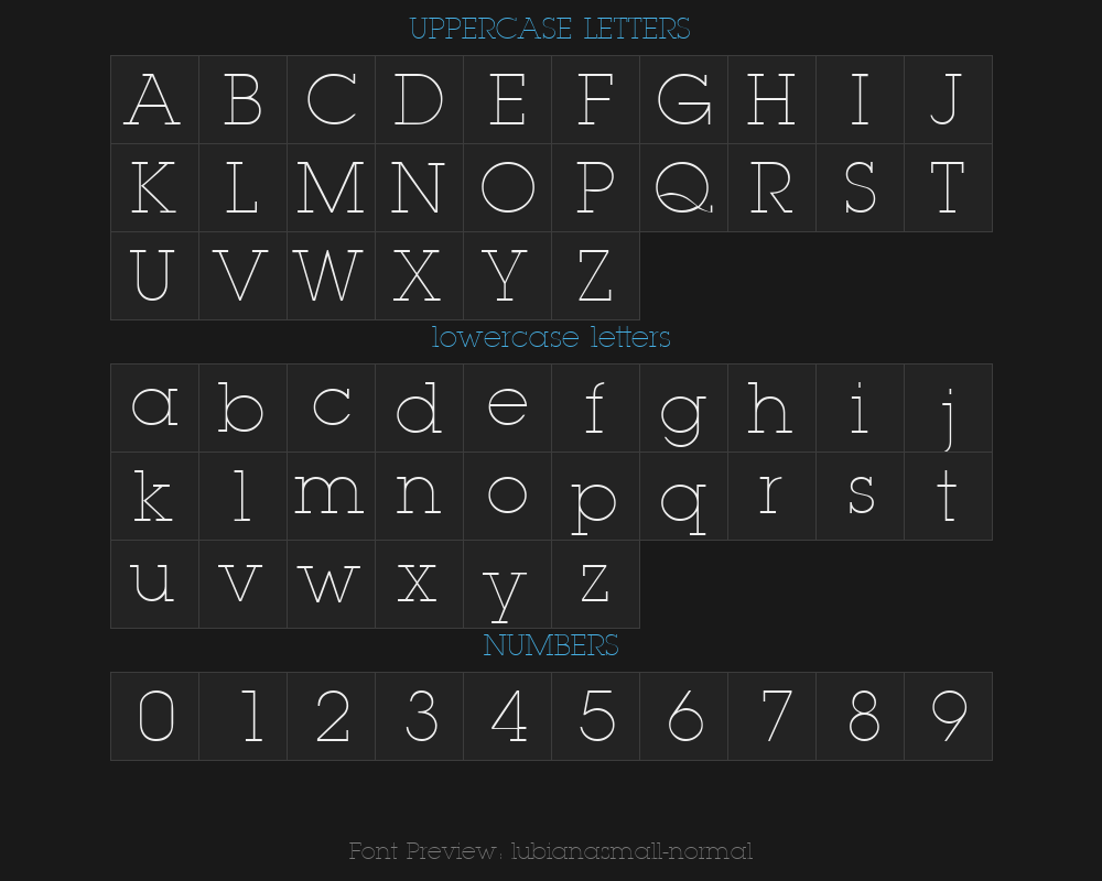 lubianasmall-normal is a font file with a size of 0.06 MB. The full font name is LubianaSmall Normal, Altsys Fontographer 4.0 12.7.1993 version. It contains 208 characters, supports 8 Chinese characters. The copyright belongs to LubianaSmall. lubianasmall-normal font is available for free download, but commercial use requires confirmation on the LubianaSmall official website whether it's free for commercial use.