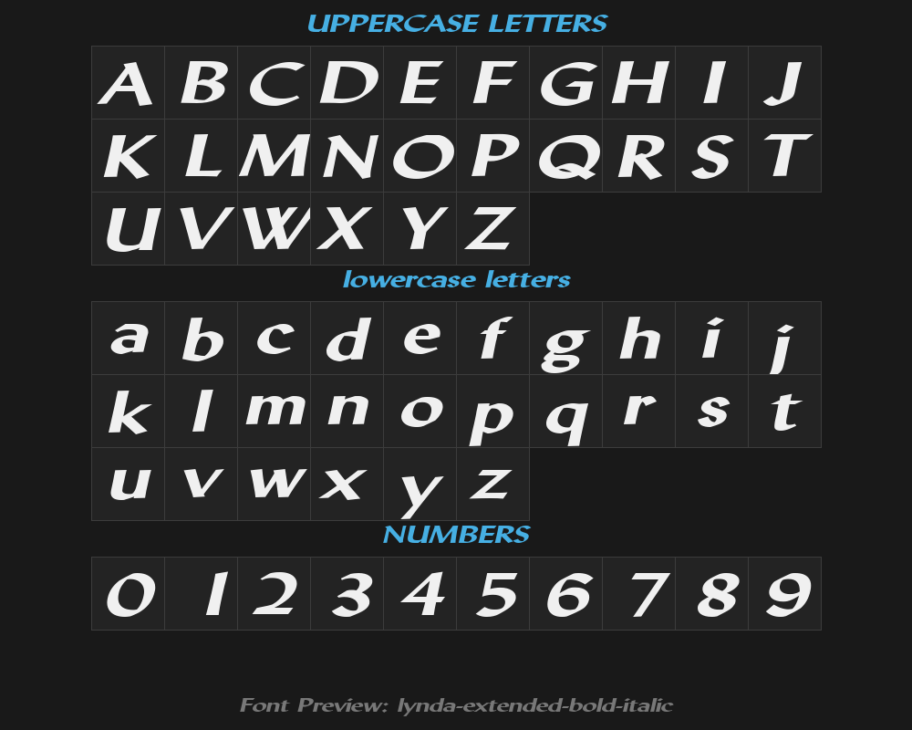 | Unique identifier | FontMonger Lynda Extended Bold Italic |