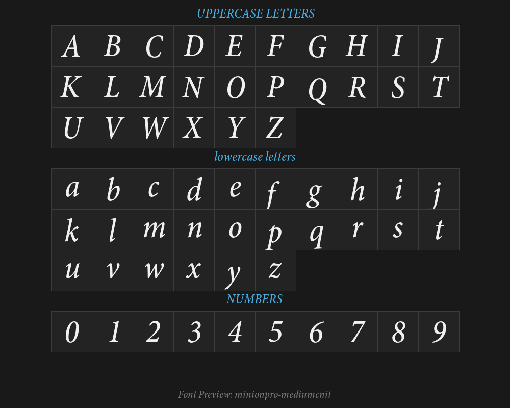 http://enfont.cnxiangyan.cn/font/minionpro-mediumcnitotf.html