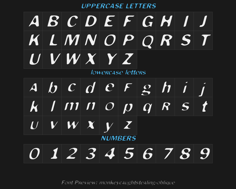 | PostScript name | MonkeyCaughtStealing-Oblique |