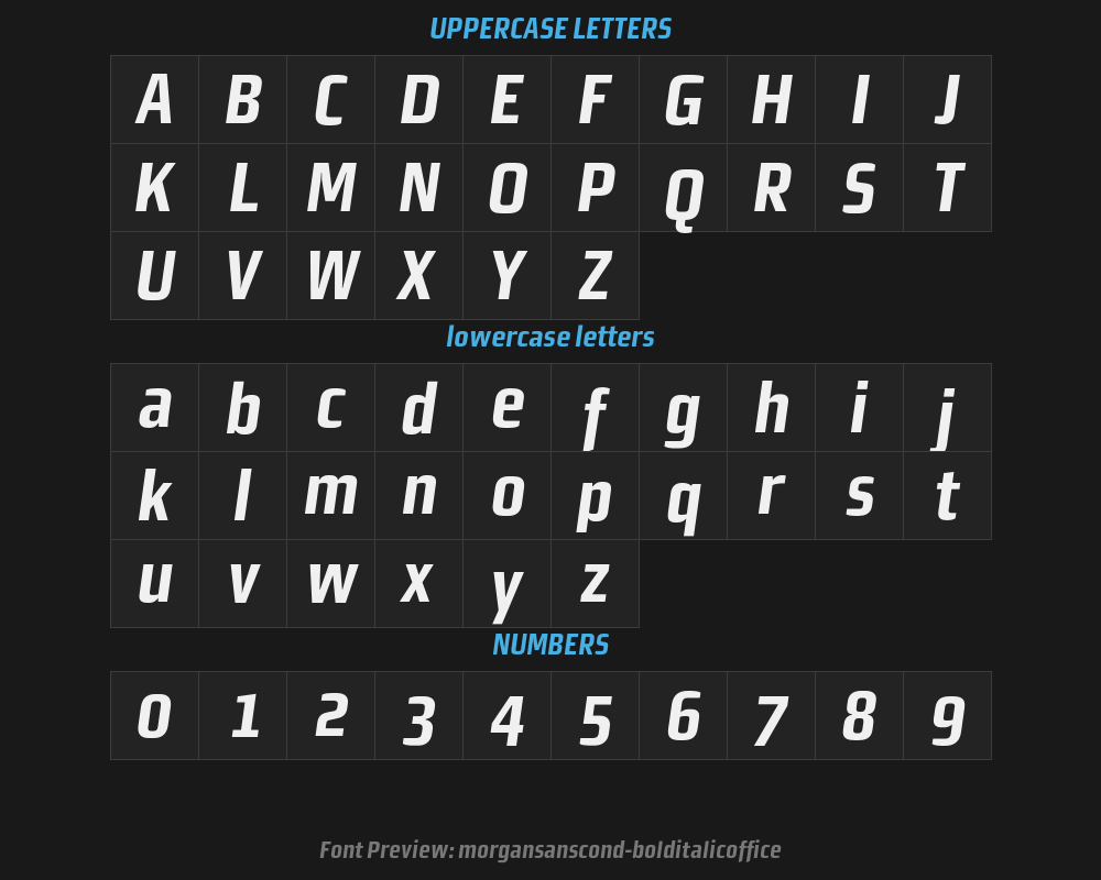 | AboutFont | MorganSansCond Bold ItalicOffice 1174415230 |
