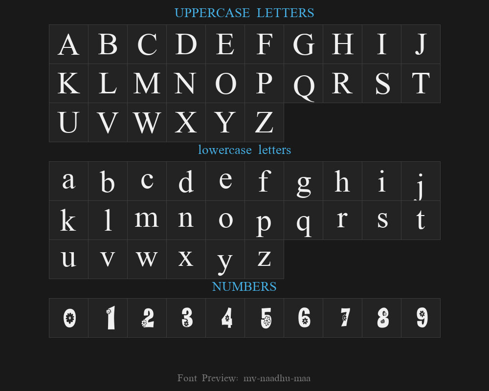 | Font description | This Font is Created by Abdulla Naahee Mohamed, NAADHu |