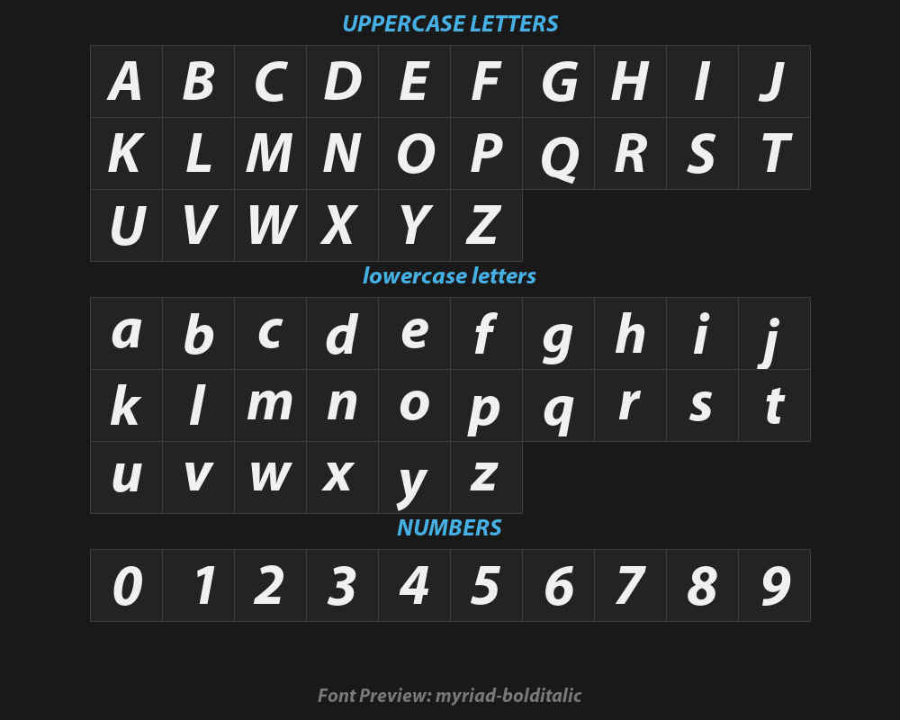 | AboutFont | Myriad Bold Italic 1177955583 |