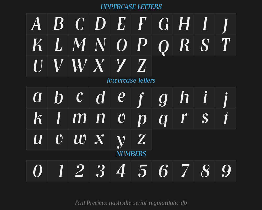 nashville-serial-regularitalic-dbFont details