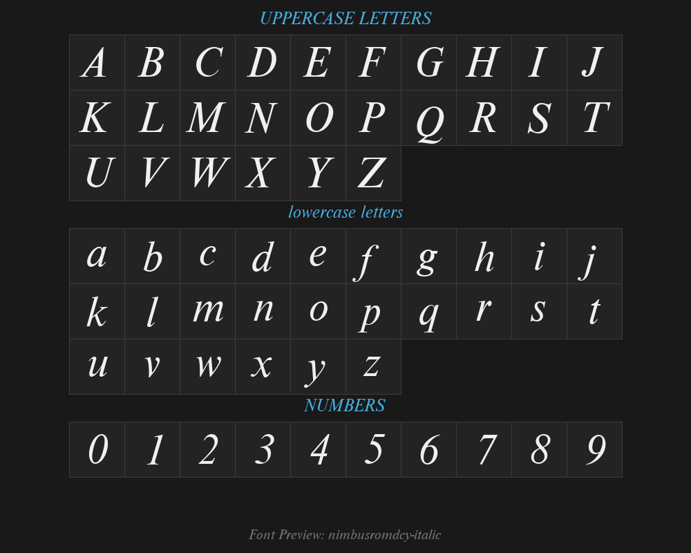nimbusromdcy-italicFont details
