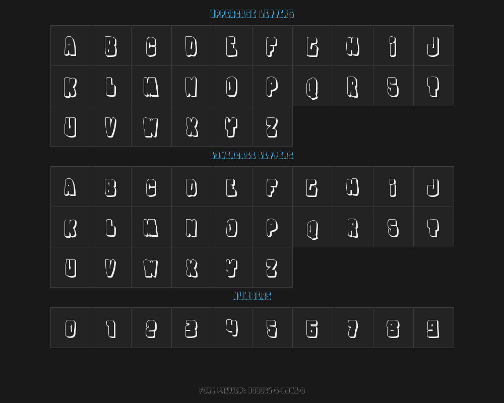nobody-s-home-3d is a font file with a size of 0.08 MB. The full font name is Nobody's Home 3D, Version 1.0; 2013 version. It contains 222 characters, supports 8 Chinese characters. The copyright belongs to Nobody's Home 3D. nobody-s-home-3d font is available for free download, but commercial use requires confirmation on the Nobody's Home 3D official website whether it's free for commercial use.