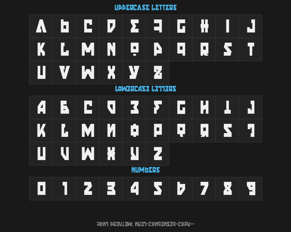 nyet-condensed-copy-1- is a font file with a size of 0.04 MB. The full font name is Nyet Condensed, 1 version. It contains 110 characters, supports 8 Chinese characters. The copyright belongs to Nyet Condensed. nyet-condensed-copy-1- font is available for free download, but commercial use requires confirmation on the Nyet Condensed official website whether it's free for commercial use.