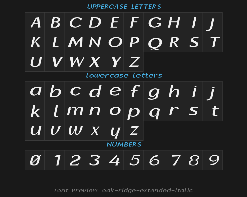 | PostScript name | Oak-Ridge-ExtendedItalic |