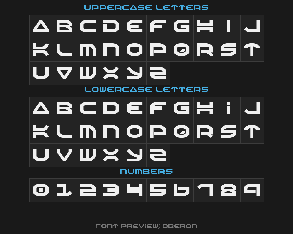 oberon is a font file with a size of 0.04 MB. The full font name is Oberon, 1.2 version. It contains 219 characters, supports 8 Chinese characters. The copyright belongs to Oberon. oberon font is available for free download, but commercial use requires confirmation on the Oberon official website whether it's free for commercial use.