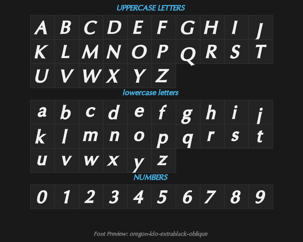 oregon-ldo-extrablack-obliqueFont details