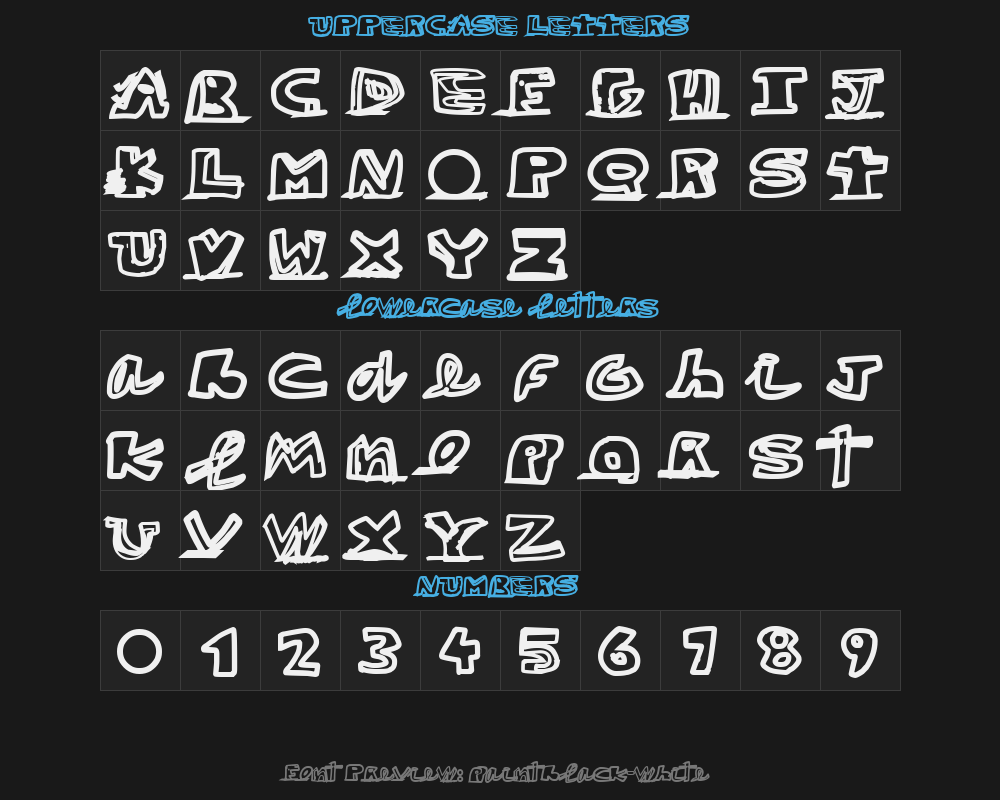 paintblack-white is a font file with a size of 0.13 MB. The full font name is paintblack white, Version 1.000 2010 initial release version. It contains 656 characters, supports 8 Chinese characters. The copyright belongs to paintblack white. paintblack-white font is available for free download, but commercial use requires confirmation on the paintblack white official website whether it's free for commercial use.