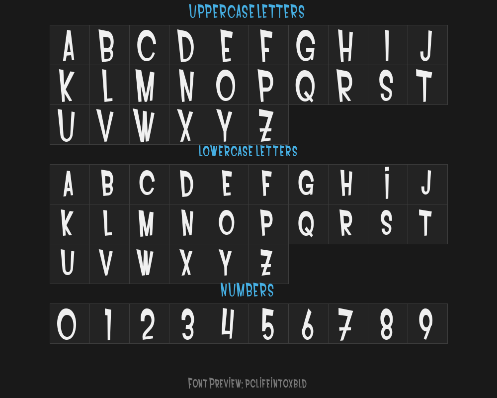 pclifeintoxbld is a font file with a size of 0.08 MB. The full font name is PCLifeIntoxBld, Macromedia Fontographer 4.1 30.11.2000 version. It contains 217 characters, supports 8 Chinese characters. The copyright belongs to PCLifeIntoxBld. pclifeintoxbld font is available for free download, but commercial use requires confirmation on the PCLifeIntoxBld official website whether it's free for commercial use.