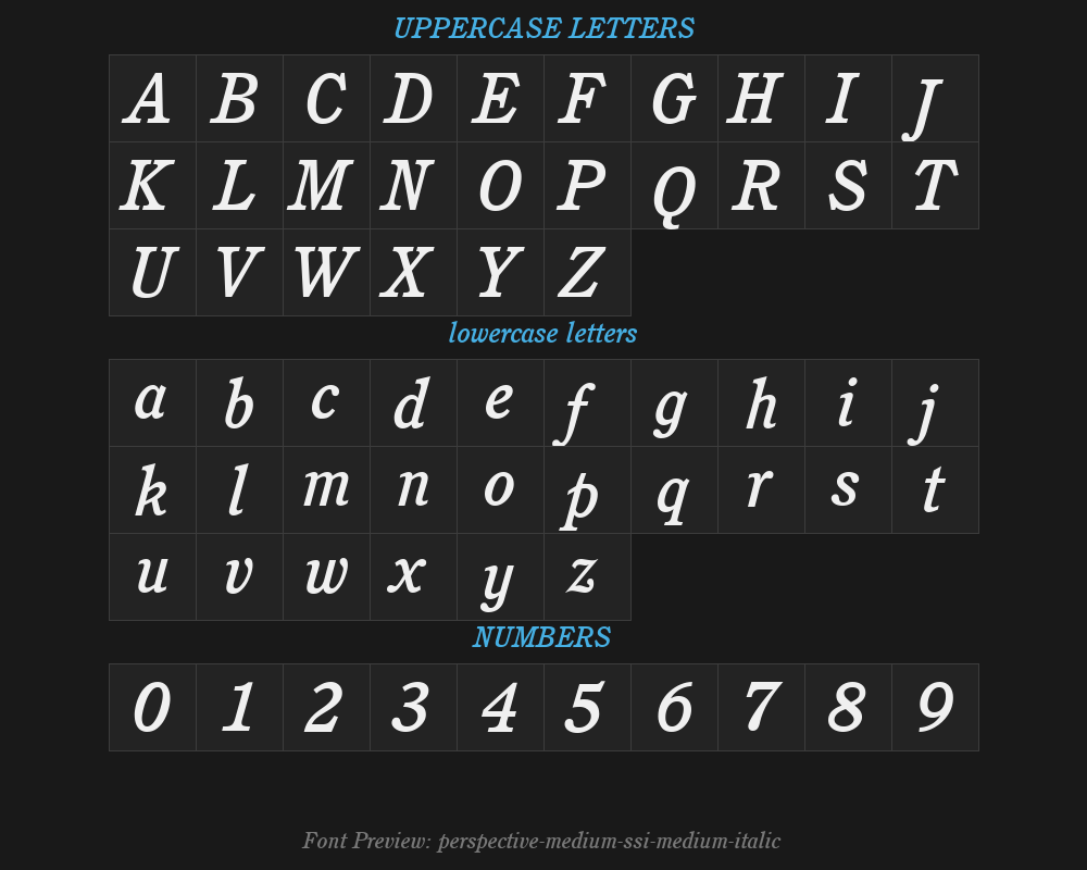 | PostScript name | PerspectiveMediumSSiMediumItalic |
