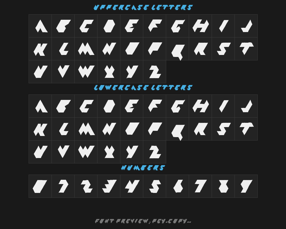 pgy-copy-1- is a font file with a size of 0.16 MB. The full font name is PGY, Version 1.00 June 3, 2011, initial release version. It contains 224 characters, supports 8 Chinese characters. The copyright belongs to PGY. pgy-copy-1- font is available for free download, but commercial use requires confirmation on the PGY official website whether it's free for commercial use.