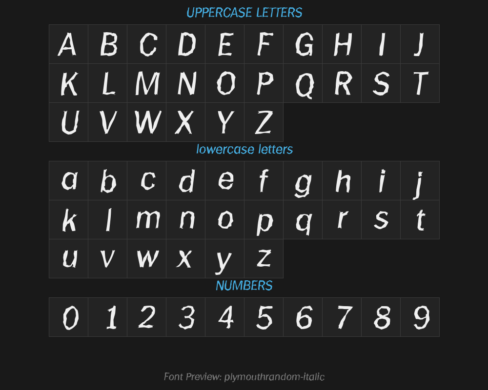 | File name | plymouthrandom-italic.ttf |