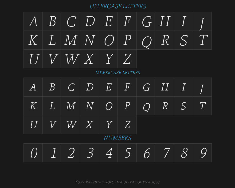 | AboutFont | Proforma-UltraLightItalicSC 1178533706 |