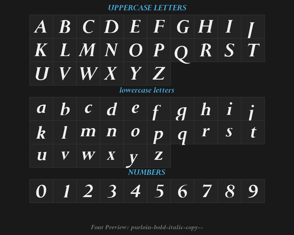 | PostScript name | PurloinBoldItalic |