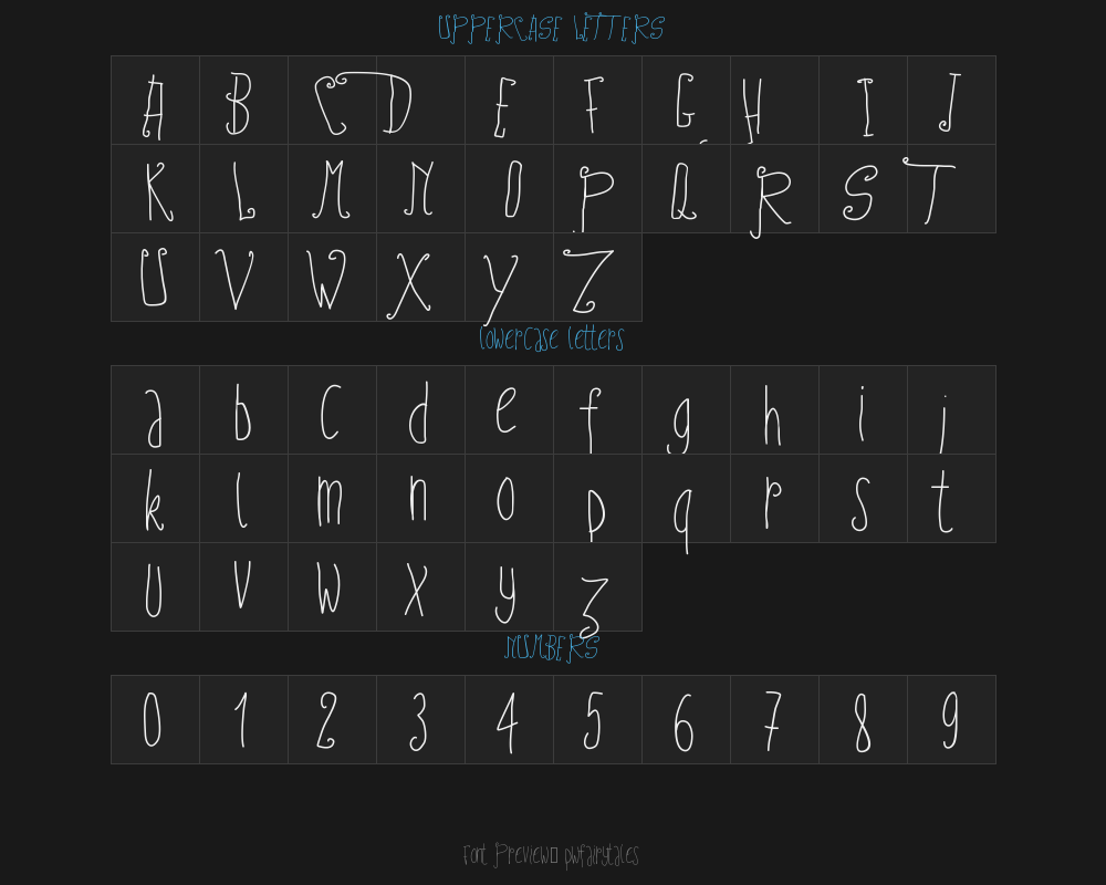 pwfairytales is a font file with a size of 0.02 MB. The full font name is PWFairyTales, Version 001.000 version. It contains 71 characters, supports 8 Chinese characters. The copyright belongs to PWFairyTales. pwfairytales font is available for free download, but commercial use requires confirmation on the PWFairyTales official website whether it's free for commercial use.