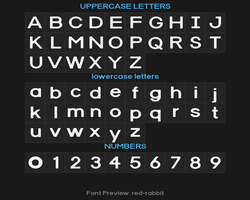 red-rabbit is a font file with a size of 0.03 MB. The full font name is Red Rabbit, Version 1.00 June 3, 2014, initial release version. It contains 656 characters, supports 8 Chinese characters. The copyright belongs to Red Rabbit. red-rabbit font is available for free download, but commercial use requires confirmation on the Red Rabbit official website whether it's free for commercial use.