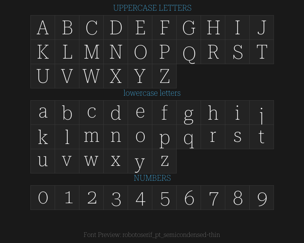 Overview:robotoserif_36pt_semicondensed-thinFont