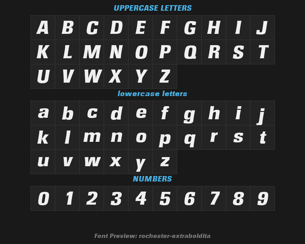 rochester-extrabolditaFont details