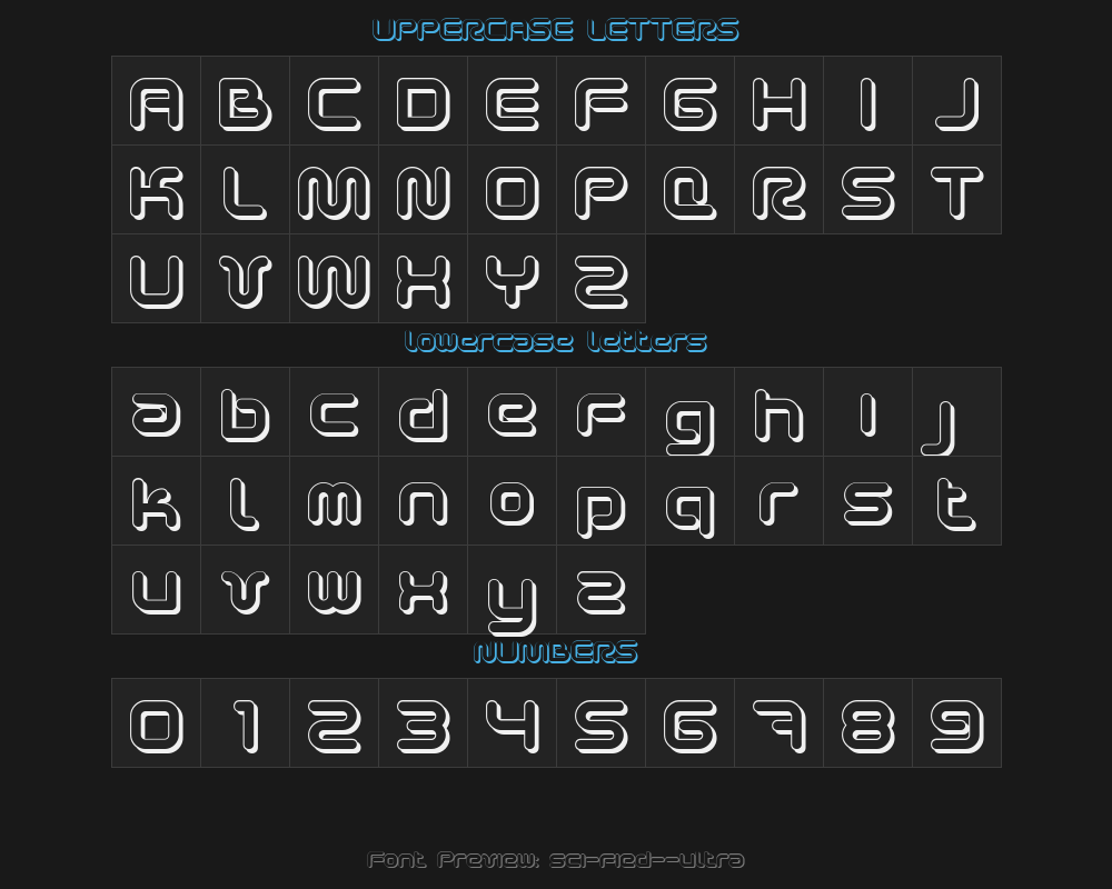 sci-fied-2002-ultra is a font file with a size of 0.09 MB. The full font name is Sci Fied 2002 Ultra, Version 1.0; 2002 version. It contains 187 characters, supports 8 Chinese characters. The copyright belongs to Sci Fied 2002 Ultra. sci-fied-2002-ultra font is available for free download, but commercial use requires confirmation on the Sci Fied 2002 Ultra official website whether it's free for commercial use.