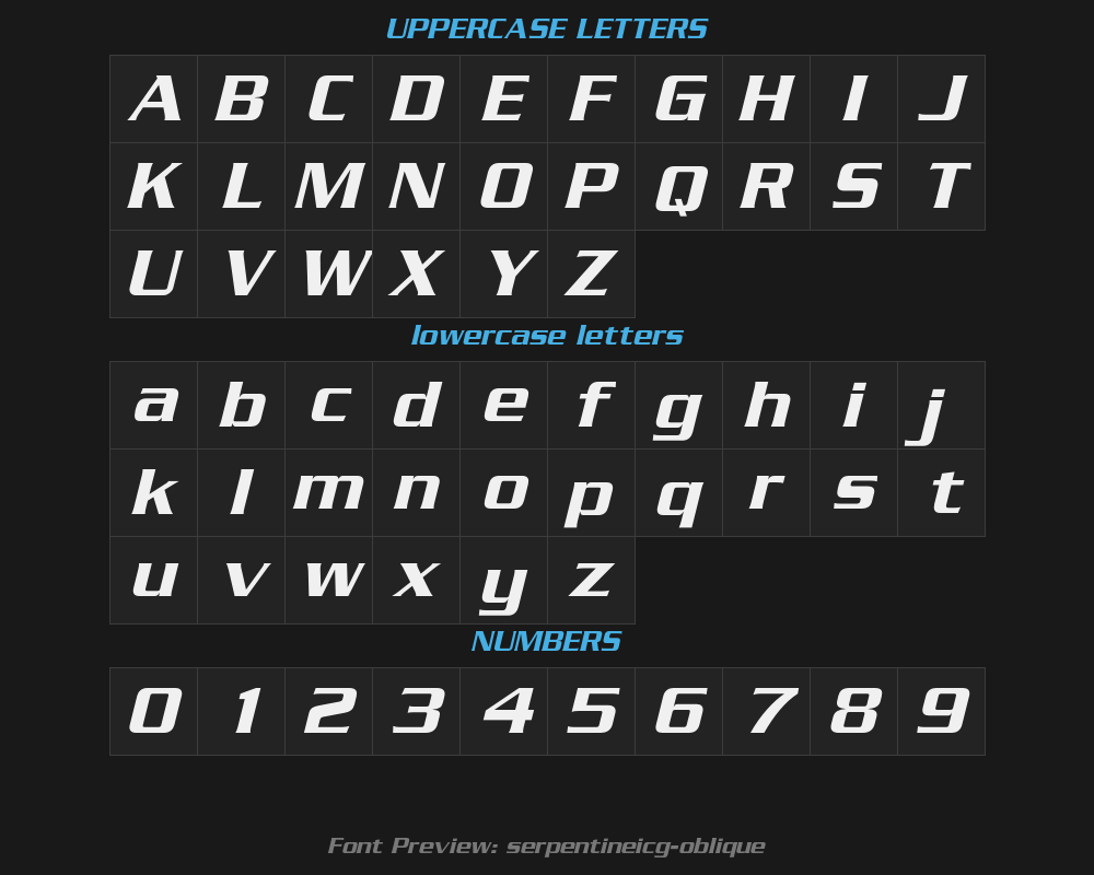 serpentineicg-obliqueFont details