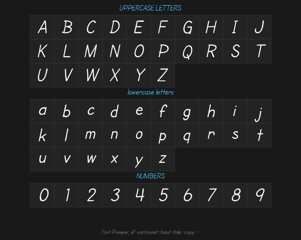 Overview:sf-cartoonist-hand-italic-copy-1-Font