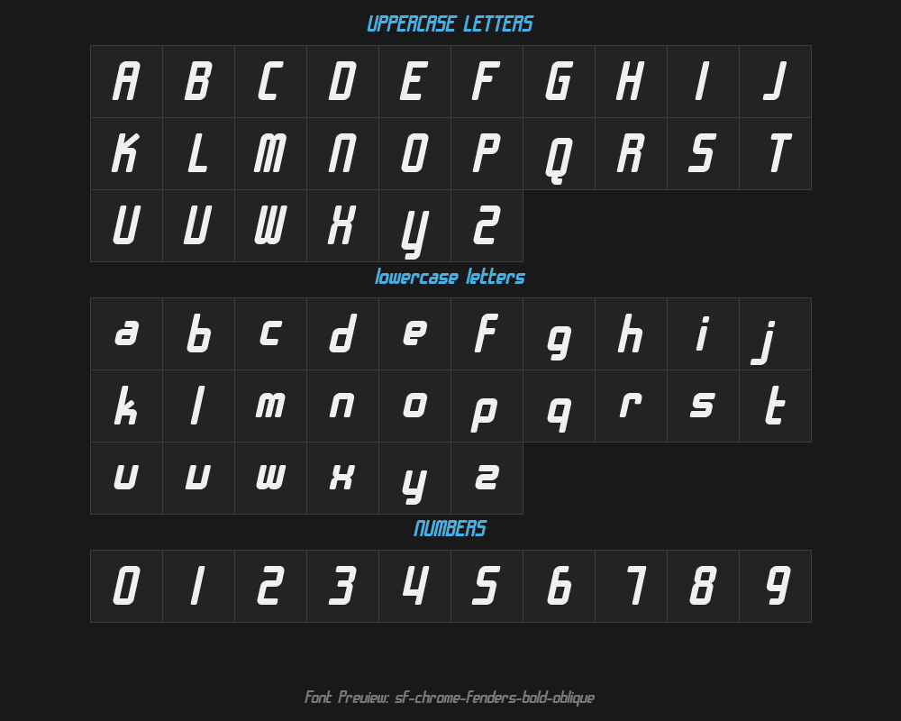 Overview:sf-chrome-fenders-bold-obliqueFont