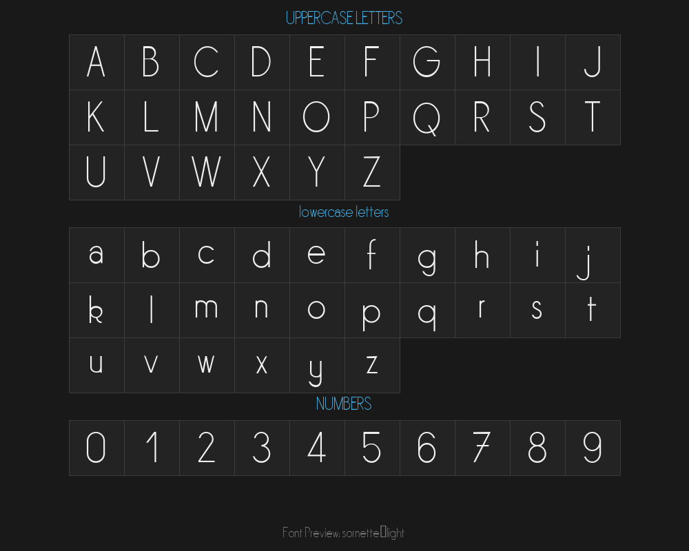 sornette-light is a font file with a size of 0.02 MB. The full font name is Sornette Light, Fontographer 4.7 17 01 12 FG4M0000002045 version. It contains 123 characters, supports 8 Chinese characters. The copyright belongs to Sornette. sornette-light font is available for free download, but commercial use requires confirmation on the Sornette official website whether it's free for commercial use.