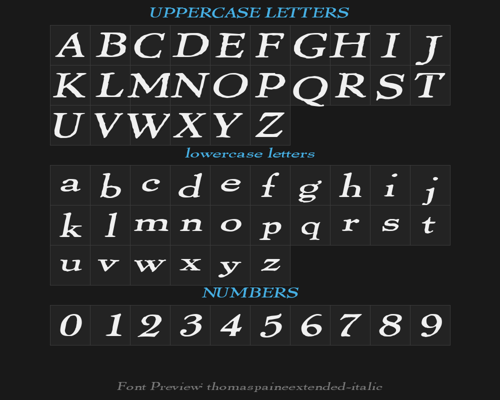 | PostScript name | ThomasPaineExtendedItalicSWFTE |
