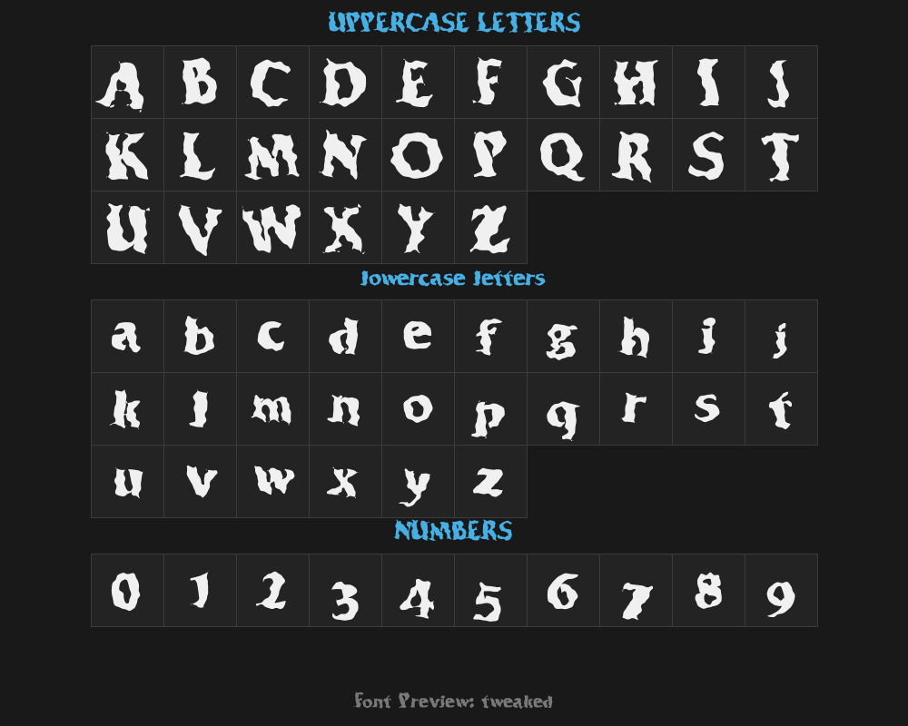 tweaked is a font file with a size of 0.02 MB. The full font name is Tweaked, 001.000 version. It contains 144 characters, supports 8 Chinese characters. The copyright belongs to Tweaked. tweaked font is available for free download, but commercial use requires confirmation on the Tweaked official website whether it's free for commercial use.