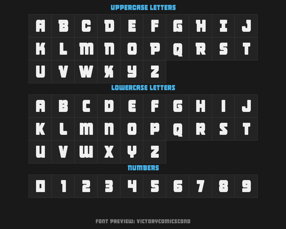 | Font family name | Victory Comics Condensed |