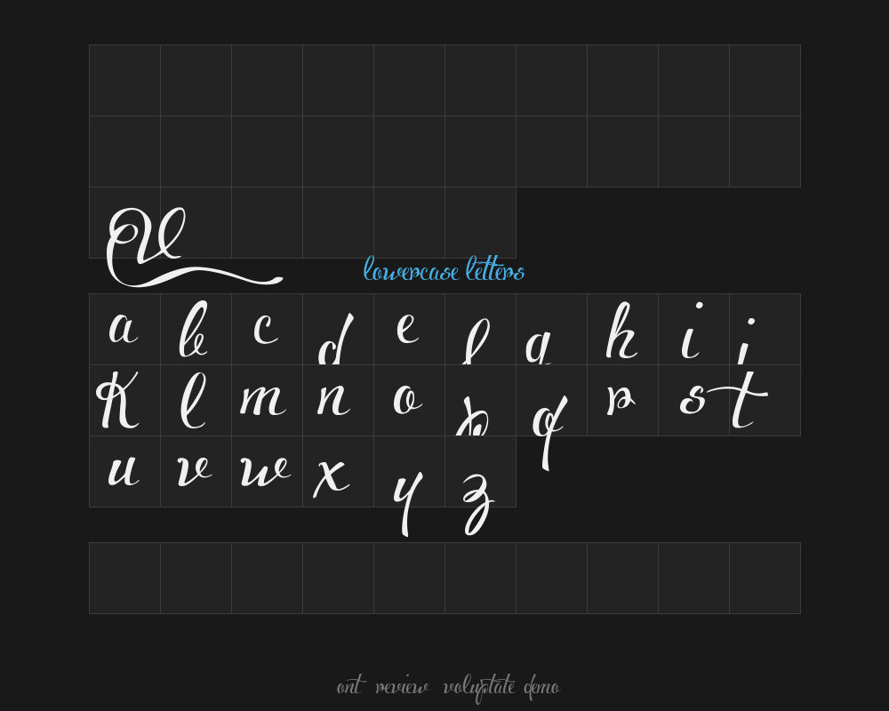 voluptate_demo is a font file with a size of 0.01 MB. The full font name is Voluptate_demo, Version 1.00 September 19, 2012, initial release version. It contains 29 characters, supports 8 Chinese characters. The copyright belongs to Voluptate_demo. voluptate_demo font is available for free download, but commercial use requires confirmation on the Voluptate_demo official website whether it's free for commercial use.