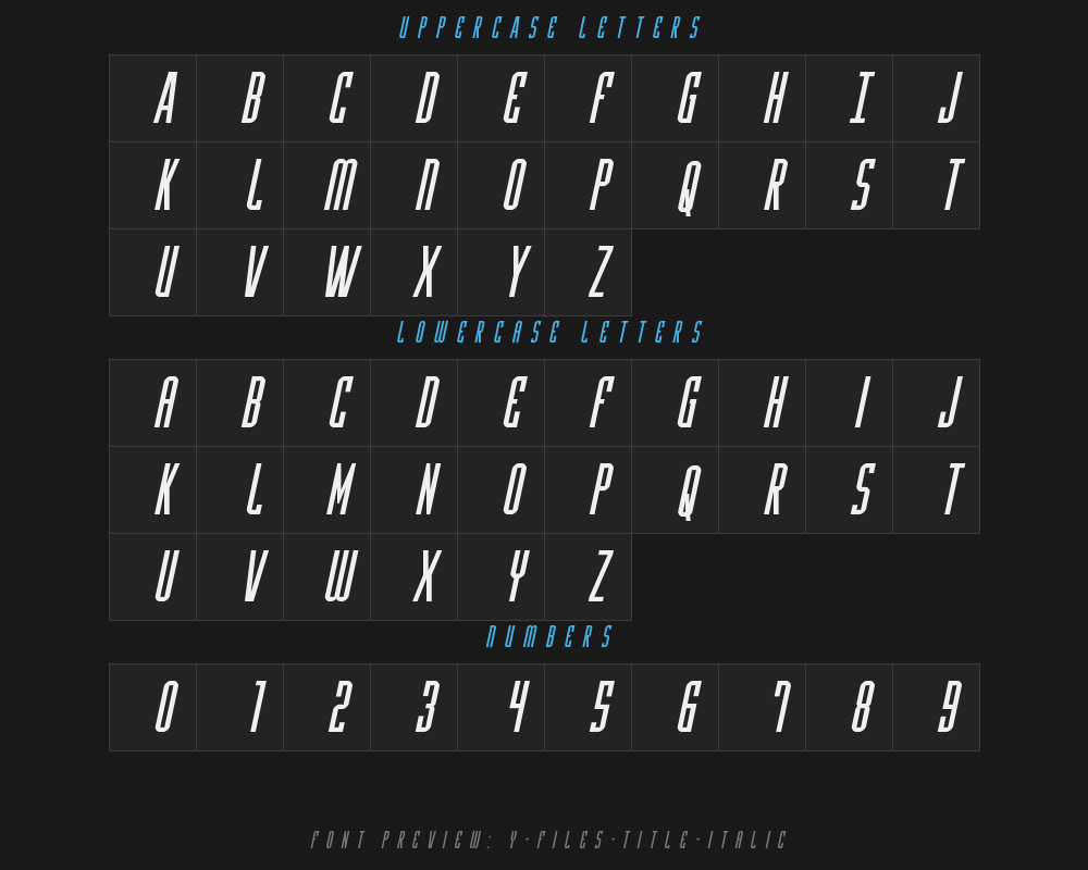 | PostScript name | Y-FilesTitleItalic |